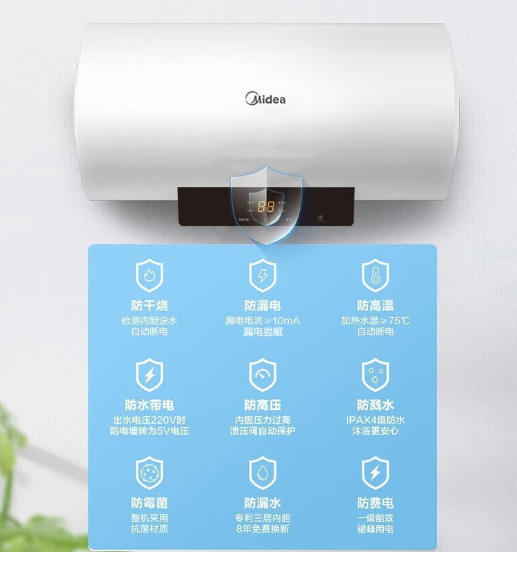 美的(Midea)储水式电热水器电家用2200W速热数显一级能效节能家用安全加长防电墙智能家电6重防护X1 一级能效更省电 60升