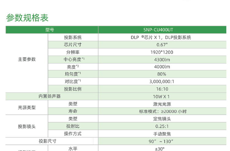 索诺克(Sonnoc)SNP-CU400UT 投影仪 教育工程投影机 超高清WUXGA 短焦 激光光源